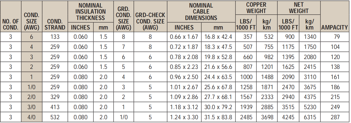 Applications: Designed for use as trailing cables on AC mining equipment: