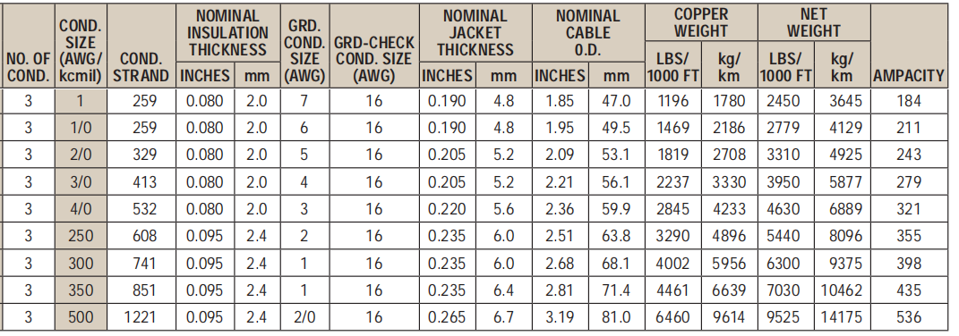 Conductor: 2 AWG thru 3/0 AWG coated annealed copper,